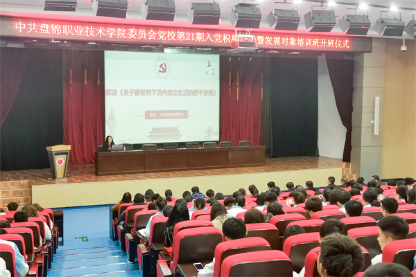仪式后,市委党校王娟教授为学员们作了题为《解读< 关于新形势下党内政治生活的若干准则>》的首场讲座,讲座以《准则》为主线,阐明了《准则》以及贯彻《准则》的重要意义,并用大量事例着重讲述了《准则》的主要内容,积极鼓励学员们为中华民族的伟大复兴贡献青春和力量。