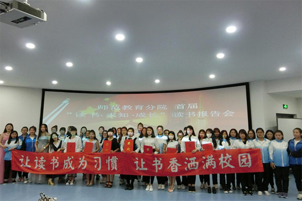 首届读书报告会是师范教育分院营造良好阅读文化氛围的有利契机,分院将以此次活动为开端,在以后的学习工作中,号召学子们多读书,读好书,以书籍陶冶性情,以书籍涵养气质,以书籍提升专业素养,做优秀合格的大学生。