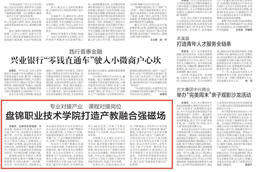 缘油而建、因油而兴的盘锦,石化产业是支柱产业,也是振兴发展的关键引擎。近年来,盘锦职业技术学院立足盘锦,适应地方经济需求,致力于服务石油化工及精细化工等关键产业领域,通过深化政企校间的合作,持续探索产教融合新模式