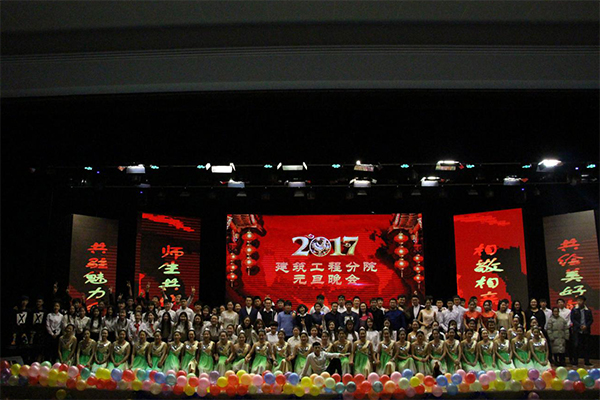 分院党总支书记致辞送上新年祝福,并与现场师生一同观看来自四面八方的毕业学生代表送上的祝福视频。 在动感的音乐伴奏中,由15级造价一班的李婷俊等女孩子们带来青春活力的舞蹈《Hold it Against Me》拉开了联欢会的帷幕,整场联欢会汇集歌曲、 舞蹈、相声、小品等,节目精彩纷呈,高潮迭起。其中辅导员老师刘国建的一曲《鸿雁》让师生眼前为之一亮,掌声不绝。小品《大学那点事儿》让师生们们捧腹爆笑。各个专业班级的同学们奉上的歌曲《我的中国新》、《南山南》、《卡农》、《背水一战》、《青花瓷》、《这个年纪》、《以后的以后》、《勇气》、《演员》、《时间煮雨》,以及舞蹈《八戒八戒》、《Bang Bang Bang》、《茉莉花》、《啦啦操》风格各异,广受欢迎。