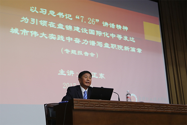 9月29日下午,盘锦职业技术学院在图书馆报告厅举行学习贯彻习总书记“7.26”重要讲话精神宣讲报告会。学院党委书记王正东同志做了题为“以习总书记7.26讲话精神为引领在盘锦建设国际...